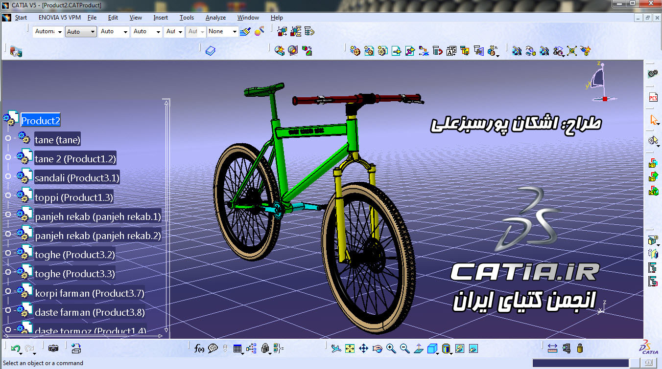 طراحی دوچرخه در محیط های پارت و اسمبلی در نرم افزار کتیا CATIA